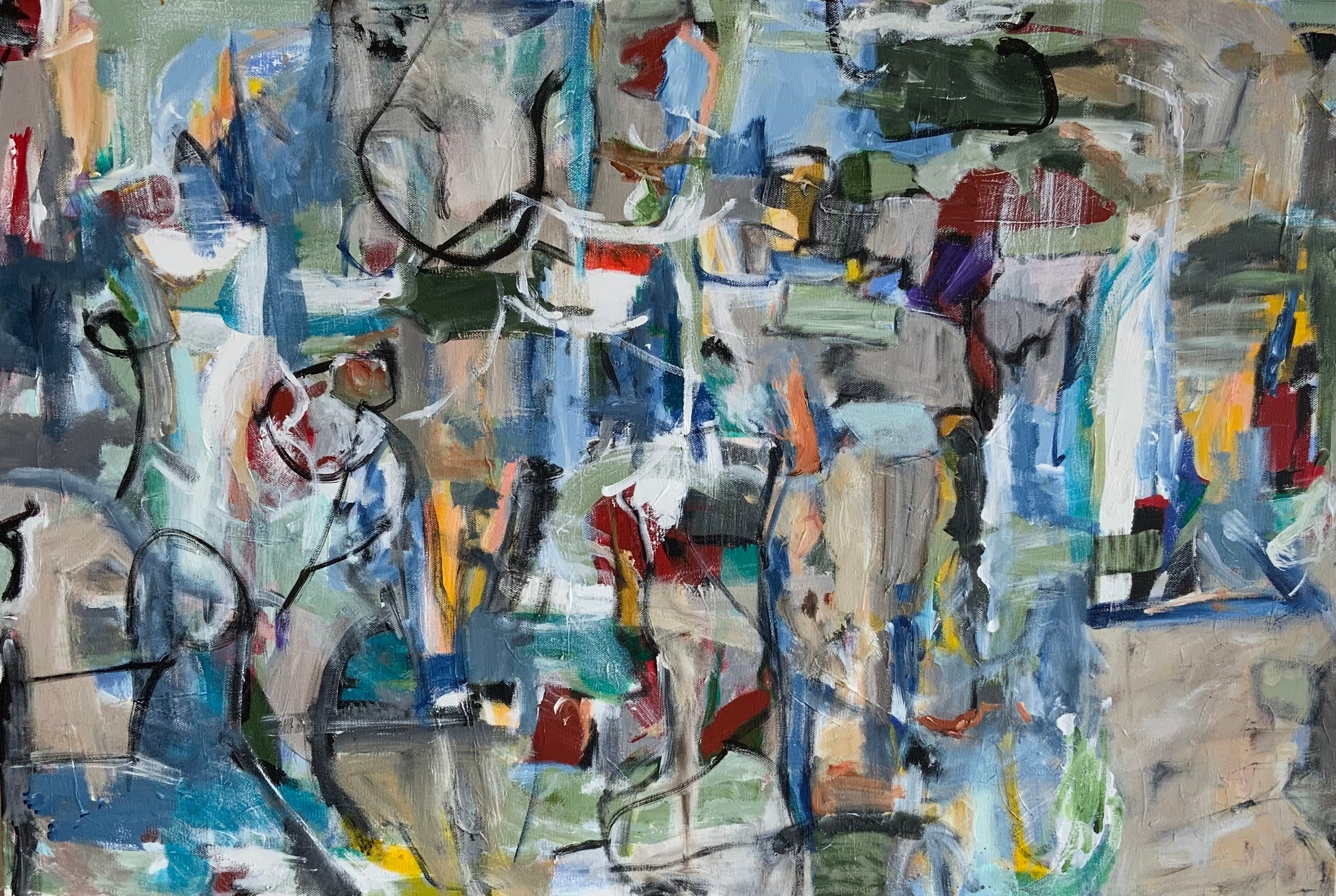 Original painting is acrylic and oil sticks on canvas 36” X 24”
