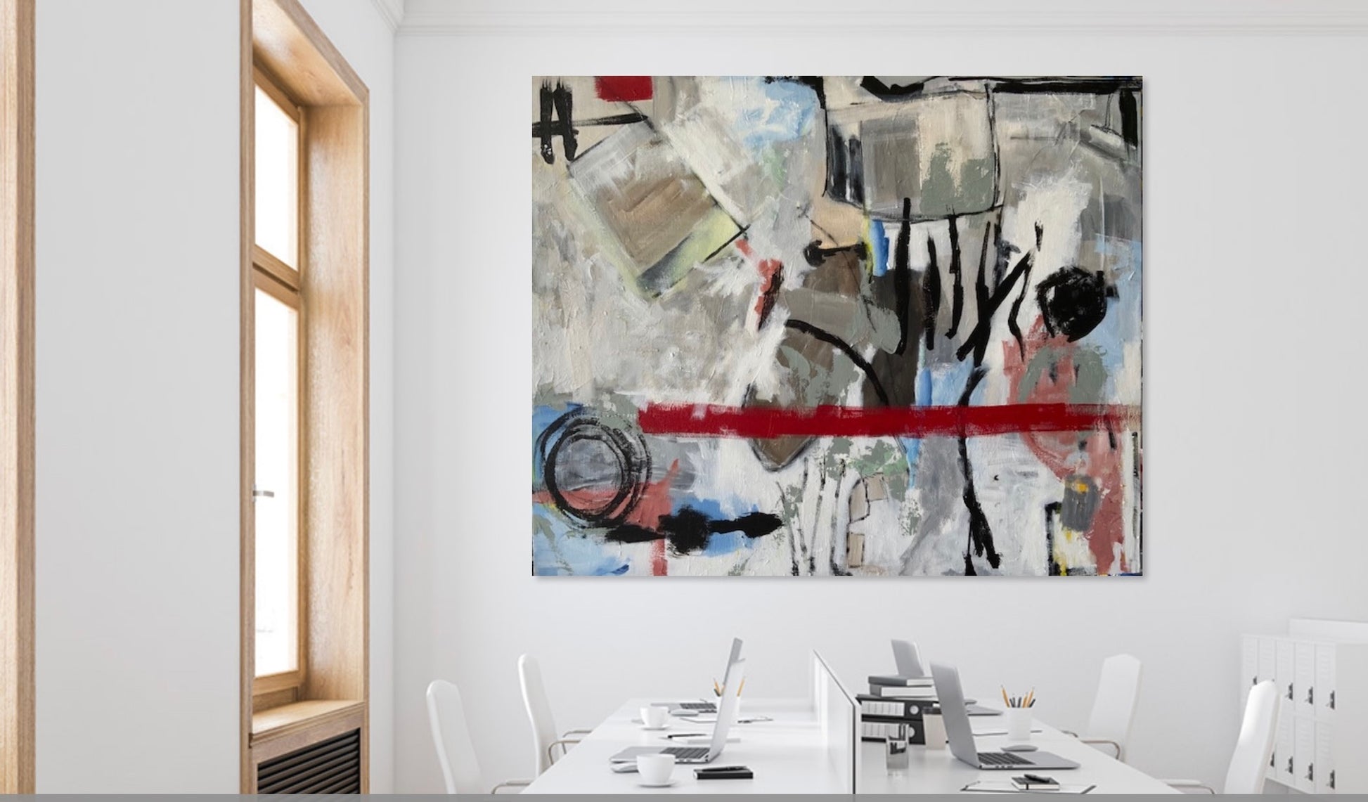 This European style abstract painting would make a sophisticated statement in your living room, dining room or office,