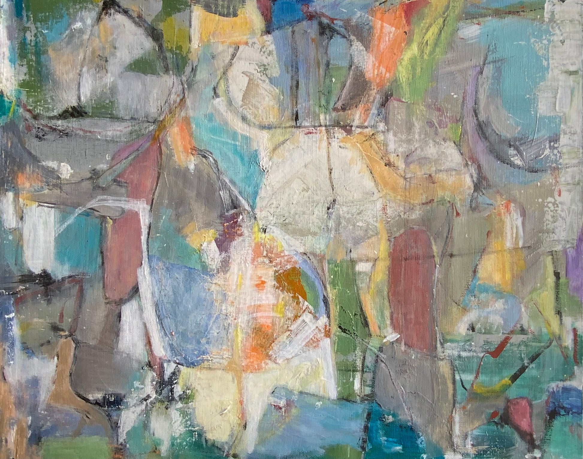 This warm and colorful pallet may take you back to the art deco era of South Florida. A mellow painting that would work well in a living room, bedroom, foyer, powder room or home office.